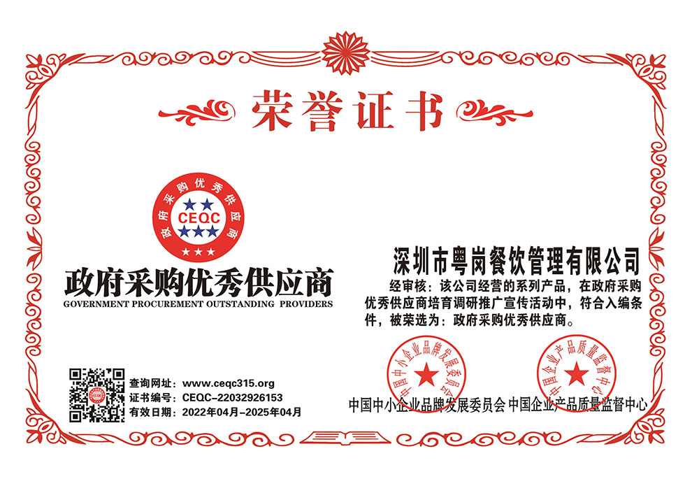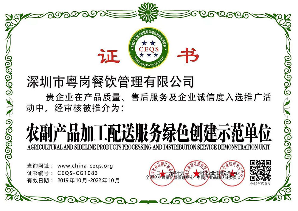 深圳市粵崗餐飲管理有限公司,是一家集蔬菜種植和農(nóng)副產(chǎn)品配送為一體的專業(yè)型餐飲公司,主要為學(xué)校、工廠企事業(yè)機(jī)關(guān)單位提供蔬菜和農(nóng)副產(chǎn)品配送服務(wù)。公司自成立以來始終以質(zhì)優(yōu)價廉、服務(wù)至上為原則,嚴(yán)格按照ISO:9001國際標(biāo)準(zhǔn)體系進(jìn)行管理。同時建立了行業(yè)領(lǐng)先的配送中心、大型冷庫和保鮮庫、檢測中心以及專業(yè)化的配送團(tuán)隊,能長期安全、穩(wěn)定、準(zhǔn)時的配送貨物。我們所有蔬菜均經(jīng)過初步加工、無黃葉,無泥沙等雜質(zhì),利用率達(dá)97%以上...保障向用戶提供的各類食材的衛(wèi)生和質(zhì)量。公司為了適應(yīng)不同客戶的需求,配有專業(yè)人員和配送車輛,實行“一對一”的服務(wù)體制,一心一意的為客戶服務(wù),秉承粵崗誠實守信、服務(wù)第一、客戶至上的服務(wù)標(biāo)準(zhǔn),真正讓客戶花最少的錢吃最好的菜。粵崗多年來何以欣欣向榮,因為我們知道只有勇于擔(dān)當(dāng)責(zé)任,才能承擔(dān)更大的責(zé)任,就是因為 粵崗員工貫徹公司態(tài)度決定一切、細(xì)節(jié)決定成敗的真理,從質(zhì)量抓起,從服務(wù)做起,才創(chuàng)造了如今的規(guī)模化供應(yīng)、統(tǒng)一性配送、專業(yè)化服務(wù)的粵崗。